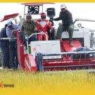 Bupati Sambas H Satono bersama Wakil Bupati Sambas H Heroaldi Djuhardi Alwi menghadiri panen raya padi bersama Brigade Pangan Sahabat Lumpur, Senin (2/6/2025)